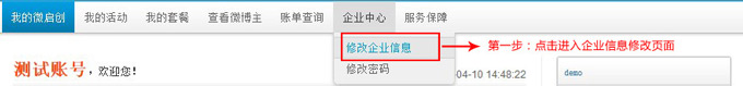 2、进入平台,修改企业信息(注:所填写的信息必须为真实信息)