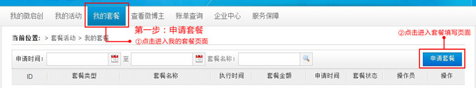 1、点击“我的套餐”——“申请套餐”