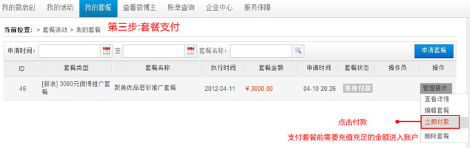 3、套餐支付